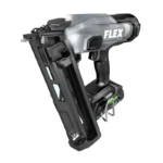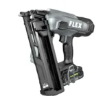 Power through moulding and trim installation with the FLEX 24V Brushless 16Ga Angled Finish Nailer. This cordless finish nailer delivers high-speed power by driving up to 3 nails per second with zero ramp up time. It drives up to 1,500 nails on a single charge with a 2.5Ah lithium-ion battery for extended runtime. The nail gun features an ergonomic quick depth adjustment lever to easily set the ideal nailing depth when driving fasteners, and its triple LED light delivers shadow-free illumination for better visibility in dark work areas. The cordless nail gun toggles between bump and sequential firing modes and has a nail indicator to easily see how many nails remain in the magazine. Dry-fire lockout avoids blank firing and damage to your work when the nail supply is exhausted. Tool-free jam clearance allows you to quickly clear jammed nails without tools for maximum efficiency when you’re on the job. The cordless nailer is compact and lightweight to conquer tight spaces with minimal fatigue. Its heavy-duty belt clip can be mounted on either side of the tool and features a lead-in profile. The finish nailer accepts 1-1/4-inch to 2-1/2-inch 16-gauge fasteners. This cordless nailer delivers the FLEX Advantage of unmatched battery power, runtime, and fast charging. Kit includes the 16Ga Angled Finish Nailer, 2.5Ah lithium battery, 160W Fast Charger, belt clip, (3) no-mar tips, and a FLEX bag.