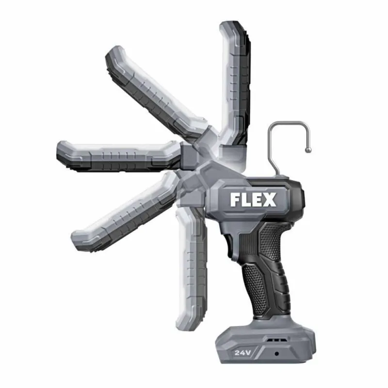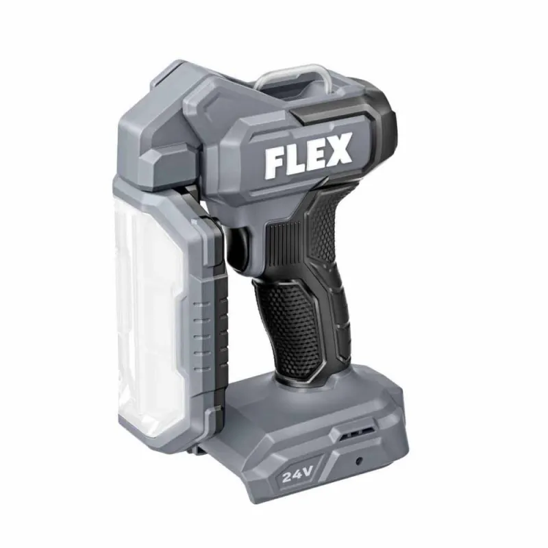 Light up your workspace with the versatile FLEX 24V Inspection Light. This innovative inspection light features angled light panels optimized for lighting large areas and surfaces like a flood light. It also features a 180-degree pivot and 270-degree swivel for multidirectional lighting. Adjustable brightness across three settings of 200, 500, or 1,000 lumens allow you to light for the task at hand, and a sliding hook, belt clip, and magnet provide versatile mounting options. This inspection light delivers the FLEX Advantage of unmatched battery power, runtime, and fast charging (batteries and chargers sold separately). It’s all protected by the FLEX Founders Limited Lifetime Warranty when registered within 30 days of purchase at registermyFLEX.com through December 31, 2023.