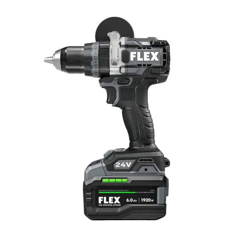 Conquer intense drilling and fastening applications with the combined power and control of the FLEX SENSOR-FREE™ Brushless MOTOR 1/2″ 2-Speed Hammer Drill Driver and 1/4″ Quick Eject Hex Impact Driver. This hammer drill is a speed demon, clocking in at 1,400 in-lbs. of industry-leading torque, 2,500 RPM, and 40,000 IPM. The hex impact driver delivers 2,500 in-lbs. of torque at 4,000 RPM with multi-mode control. Total FLEX 24V cross-compatibility ensures these tools share the FLEX Advantage of unrivaled FLEX battery power, runtime, and charging capability. Includes both tools, two 24V batteries, and charger.