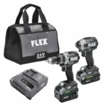 Conquer intense drilling and fastening applications with the combined power and control of the FLEX SENSOR-FREE™ Brushless MOTOR 1/2″ 2-Speed Hammer Drill Driver and 1/4″ Quick Eject Hex Impact Driver. This hammer drill is a speed demon, clocking in at 1,400 in-lbs. of industry-leading torque, 2,500 RPM, and 40,000 IPM. The hex impact driver delivers 2,500 in-lbs. of torque at 4,000 RPM with multi-mode control. Total FLEX 24V cross-compatibility ensures these tools share the FLEX Advantage of unrivaled FLEX battery power, runtime, and charging capability. Includes both tools, two 24V batteries, and charger.