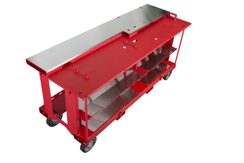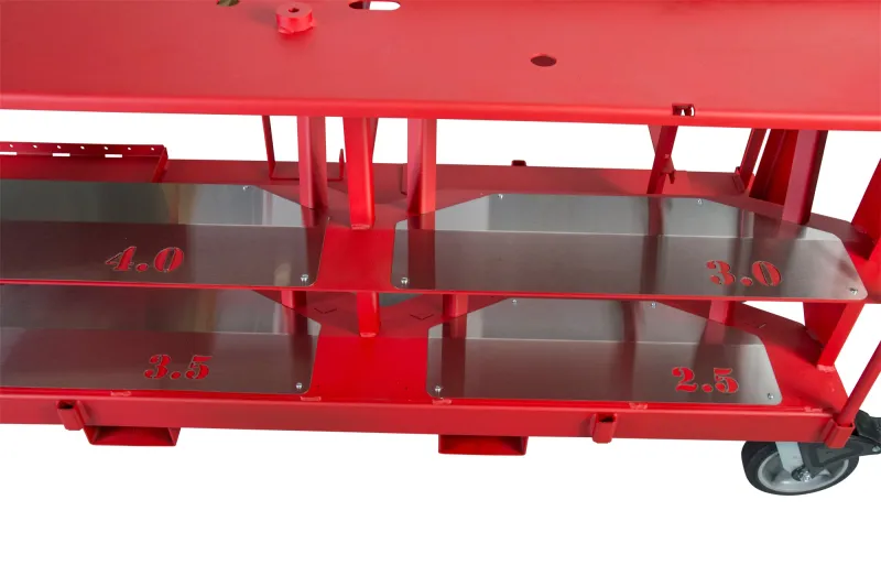 The Mobile Bend-Mate Table is a key component of the Mobile Bend-Mate System which empowers one person to setup, operate and finish a job faster than ever. As soon as you’re ready, lock down the wheels and get to work. This table is designed to ensure that you have everything you need at your fingertips. Storage for all bending shoes, follow bars and pump are integrated into the unique table design with a place for the hydraulic hoses to be installed and routed which optimizes setup and teardown time on the job site. When one job is complete, the Mobile Bend-Mate Table moves easily from one location to the next with four heavy duty swivel casters that pivot in any direction and lock securely. The entire system fits just about anywhere sliding through doorways as narrow as 32 inches. Built-in forklift pockets on all four sides provide immediate access for lifting and loading. At the end of the work day, the Mobile Bend-Mate Table’s lockable bars quickly secure shoes, follow bars, pump and bender for overnight storage on-site. Includes: Mobile Bend-Mate Table only (Ultra Eegor Hydraulic Bender, Electric Pump and Shoe Sets Sold Separately) Proudly made in the USA.