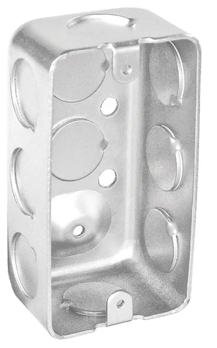 20 Amp Tamper-Resistant Duplex Floor Box Kit. Brushed Stainless Cover with Flip Lid and Locking Tabs. 3-1/2 inch Deep Box included. Cover Dimension: 5in L X 2.87 in W.