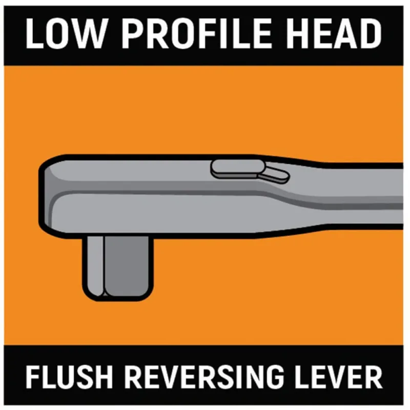 • The thin head allows the ratchet to snap on fasteners in hard to reach places and the tightest areas