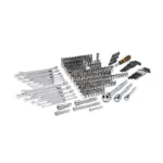 Set Components 3 Ratchets 5 Extensions Bit Driver with 30 Bits 22 Long Arm Hex Keys 22 Combination Wrenches 11 1/4″ Drive Standard SAE Sockets 10 1/4″ Drive Standard Metric Sockets 10 1/4″ Drive Deep SAE Sockets 11 1/4″ Drive Deep Metric Sockets 11 3/8″ Drive Standard SAE Sockets 17 3/8″ Drive 6 Point Standard Metric Sockets 7 3/8″ Drive Deep SAE Sockets 11 3/8″ Drive Deep Metric Sockets 12 3/8″ Drive 12 Point Standard Metric Sockets 10 1/2″ Drive Standard SAE Sockets 11 1/2″ Drive Standard Metric Sockets Spark Plug Socket 14 Nutdriver Bits