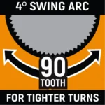 - 90 Tooth gear delivers a 4° swing arc to turn a fastener in tight confines