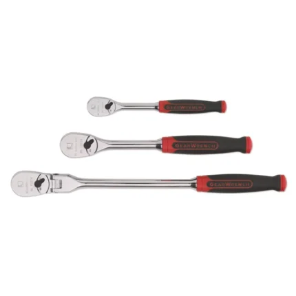 GearWrench 81203F 3 Piece 1/4″ & 3/8″ Drive 84-Teeth Dual Material Flex Head Teardrop Ratchet Set