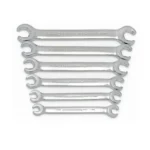 The GEARWRENCH flare nut wrenches provide grip on flare nuts used on brake lines, fuel pumps, and plumbing applications. The narrow opening on the heads allow the wrench to fit over tubes. The wrenches are made from alloy steel and have a bright chrome finish that is easy to clean. The size is stamped on both sides of the wrench for quick identification. The 81906 is a 6 pc. metric set that includes 9 mm x 11 mm, 10 mm x 12 mm, 13 mm x 14 mm, 15 mm x 17 mm, 16 mm x 18 mm, and 19 x 21 mm sizes.