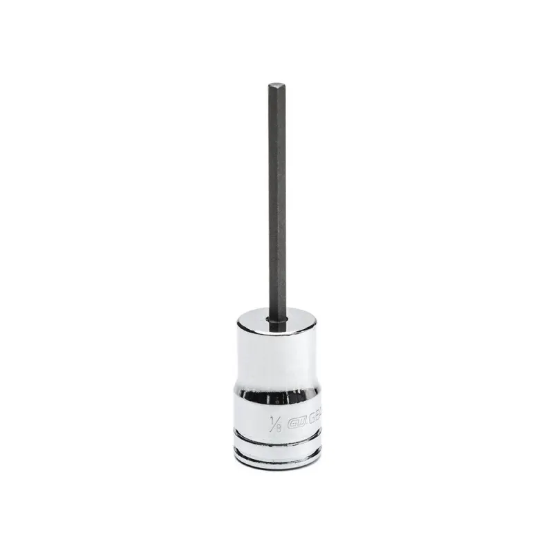 Living up to the reputation of the brand, GEARWRENCH chrome bit sockets deliver unprecedented speed, strength, and access to almost any job. Large, hard-stamped markings allow for easy identification and can be easily recognized as SAE (double line) or metric (knurled line). Available in standard, mid, and long bit lengths, the chrome hex bit sockets include the most commonly used sizes. The bits are manufactured from S2 steel to the highest tolerances to guarantee a precise fit. GEARWRENCH sockets will get the job done.
