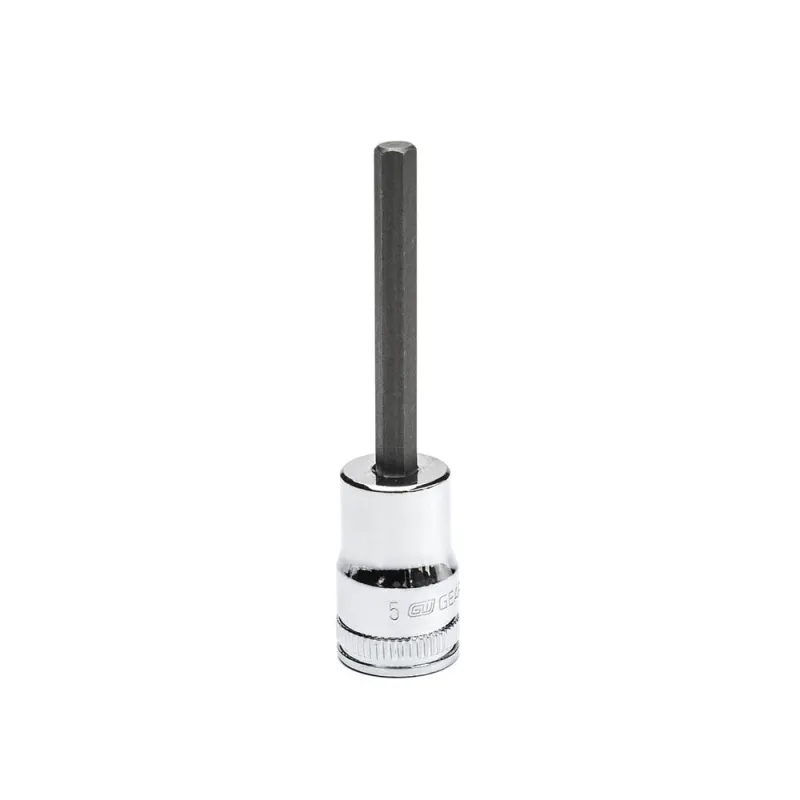 Living up to the reputation of the brand, GEARWRENCH chrome bit sockets deliver unprecedented speed, strength, and access to almost any job. Large, hard-stamped markings allow for easy identification and can be easily recognized as SAE (double line) or metric (knurled line). Available in standard, mid, and long bit lengths, the chrome hex bit sockets include the most commonly used sizes. The bits are manufactured from S2 steel to the highest tolerances to guarantee a precise fit. GEARWRENCH sockets will get the job done.