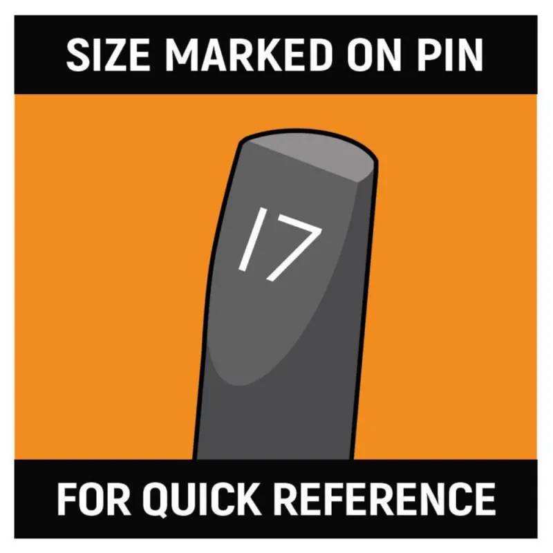 • Quick to read size markers on the top of each pin