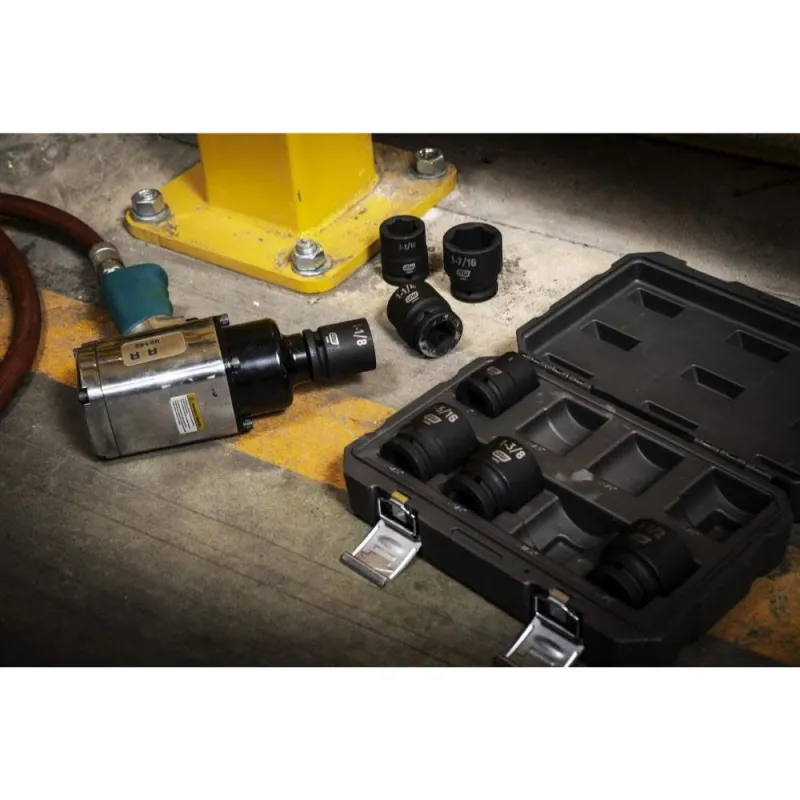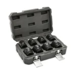The GEARWRENCH 84034 – 3/4″ Drive 8 Piece 6 Point SAE Impact Socket Set is built to handle even the harshest extreme professional work environment. The set features heavy duty impact sockets made of premium Chrome molybdenum alloy steel (Cr-Mo) for exceptional strength and durability, have high visibility size markings with bright laser etchings and secondary hard stamped size markings, the sockets are of standard “shallow” depth with a 6 point off-corner loading design reduces fastener rounding. The sockets meet or exceed ASME specifications for strength/durability and feature a pin hole that can be used with pin and O-ring for secure socket retention to a drive tool. The sockets come packed in a durable blow molded case by GEARWRENCH is designed to withstand extreme conditions and provides protection and organization for the sockets, making it easy to store and transport the entire set.