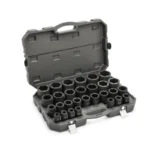 The GEARWRENCH 84037 – 3/4″ Drive 29 Piece 6 Point Deep SAE Impact Socket Set is built to handle even the harshest extreme professional work environment. The set features heavy duty impact sockets made of premium Chrome molybdenum alloy steel (Cr-Mo) for exceptional strength and durability, have high visibility size markings with bright laser etchings and secondary hard stamped size markings, the sockets are of deep depth with a 6 point off-corner loading design reduces fastener rounding. The sockets meet or exceed ASME specifications for strength/durability and feature a pin hole that can be used with pin and O-ring for secure socket retention to a drive tool. The sockets come packed in a durable blow molded case by GEARWRENCH is designed to withstand extreme conditions and provides protection and organization for the sockets, making it easy to store and transport the entire set.