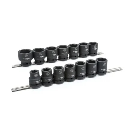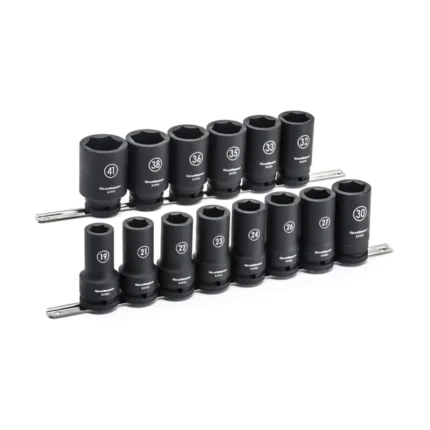 GEARWRENCH offers a wide range of impact sockets in open stock & sets that are designed to deliver the performance and strength that the professional users require. They are made from chrome molybdenum alloy steel for exceptional strength and durability. Sockets have a manganese phosphate coating to resist corrosion. The sockets also feature highly visible laser etched markings and a secondary size hard stamping. The sockets feature off-corner loading to reduce fastener rounding. The GEARWRENCH impact product family will allow the professional user to FORGE AHEAD.