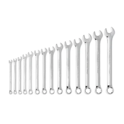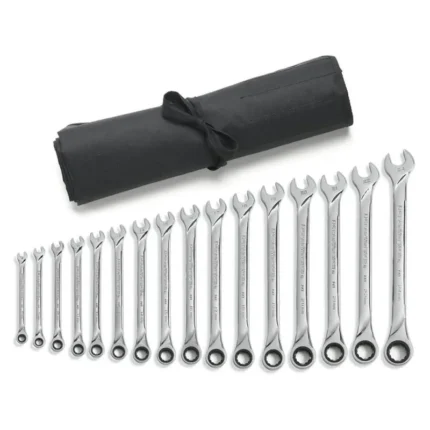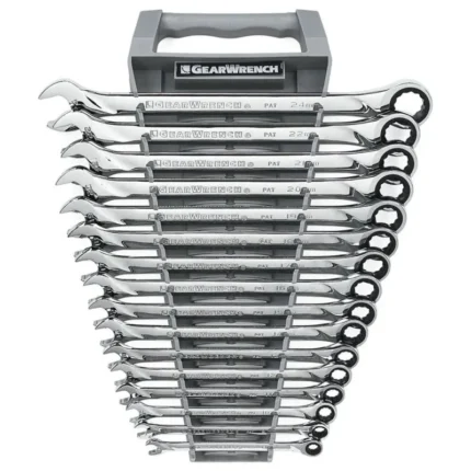 The GEARWRENCH XL X-Beam wrenches have been designed to offer up to a 500% increase in surface contact area versus a standard wrench handle. The X-Beam allows the user to apply force to the flat of the wrench greatly reducing hand fatigue. The XL X-Beam wrenches are 20% longer than our standard ratcheting combination wrenches providing more access and strength to tighten or release the most stubborn fasteners. The ratcheting box end is designed to need as little as 5° to move fasteners versus 30° for standard wrenches. The wrenches are made from a strong alloy steel with a bright, full polish chrome finish. The ratcheting box end features off-corner loading for a better grip on the fastener and reduces fastener rounding. The 85298 is a flex head 9 piece SAE set that includes sizes 5/16 in. to 3/4 in. and comes with a tray for storage and organization.