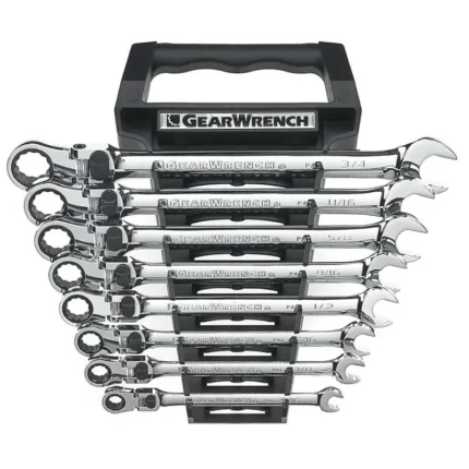 GearWrench 85298 9 Pc. 72-Tooth 12 Point XL X-Beam Flex Head Ratcheting Combination SAE Wrench Set