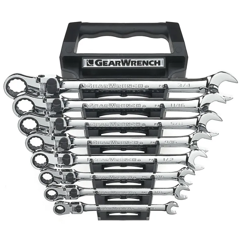 GearWrench 85798 8 Pc. 72-Tooth 12 Point XL Locking Flex Head Ratcheting Combination SAE Wrench Set