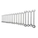 GEARWRENCH’s original ratcheting wrenches combine the speed of a ratchet with the access and control of a wrench. They offer the ease of 5 degrees of movement to turn fasteners, versus 30 degrees on standard combination wrenches. The small ratcheting box end head design enables access to tight spots where a ratchet won’t fit. The open end allows for easier access on tough to reach spots, making jobs go faster and easier. This set is a great addition to any mechanic tools collection.