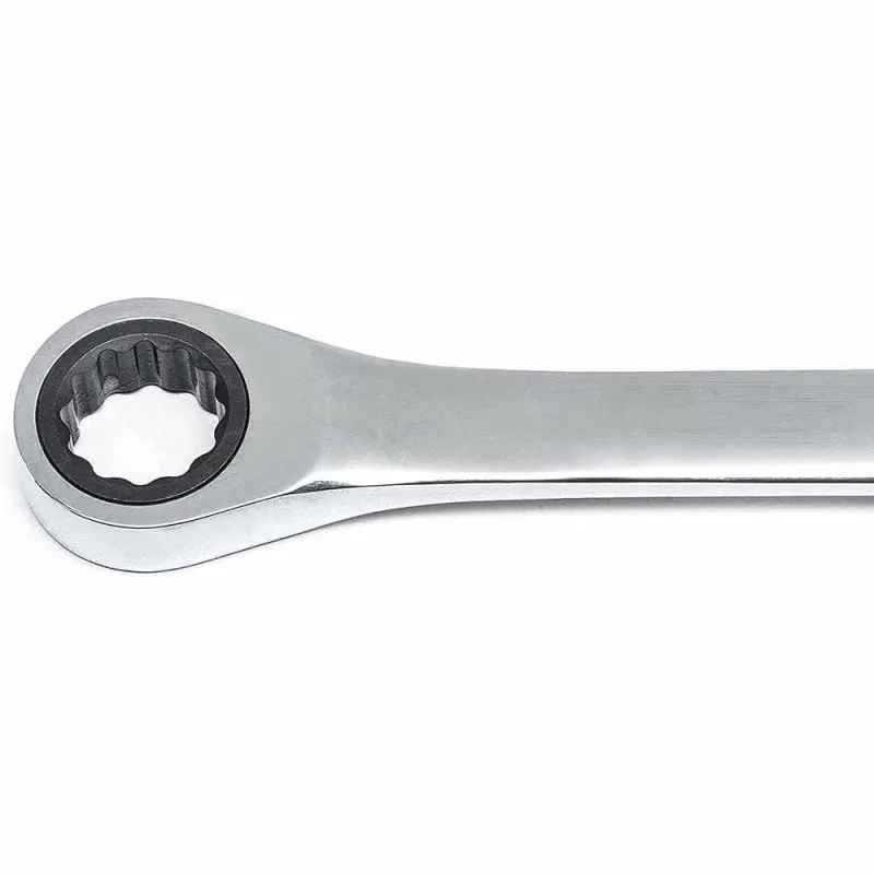 The GEARWRENCH XL GearBox double box ratcheting wrenches feature a non-ratcheting box end for breaking loose stubborn fasteners and a ratcheting box end to make quick work of loosening and tightening fasteners without having to remove the wrench. The wrenches are up to 40% longer than our standard double box ratcheting wrenches providing more access and strength to fasteners. The ratcheting box end is designed to need as little as 5° to move fasteners versus 30° for standard wrenches. The wrenches are made from a strong alloy steel with a bright, full polish chrome finish. The ratcheting box end features off-corner loading for a better grip on the fastener and reduces fastener rounding. The 0° offset on both ends and slim profile of the wrench provides greater access to fasteners in the tightest spaces. The 85999 is a 13 piece SAE set that includes sizes 5/16 in. to 1 in.