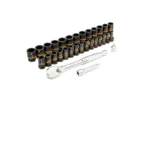 GearWrench 86525 31 Pc. 3/8″ Drive 90T Ratchet and Bolt Biter Socket Set MM/SAE with EVA Foam Tray