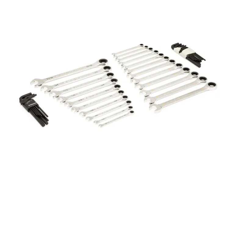 Set Components 10 SAE Ratcheting Combination Wrenches 12 Metric Ratcheting Combination Wrenches 1 SAE Hex Key 1 Metric Hex Key