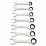 The GEARWRENCH 90 Tooth combination stubby ratcheting wrenches feature a 4 degree ratcheting arc vs. 30 degree on a standard combination wrench increasing productivity. These wrenches offer up to 60% greater access than the original GEARWRENCH ratcheting wrenches thanks to an optimized beam and smaller open and box end. These wrenches also feature off-corner loading for better grip and reduced fastener rounding. The wrenches have a sleek head design allowing access to tight spots where a ratchet would not fit.