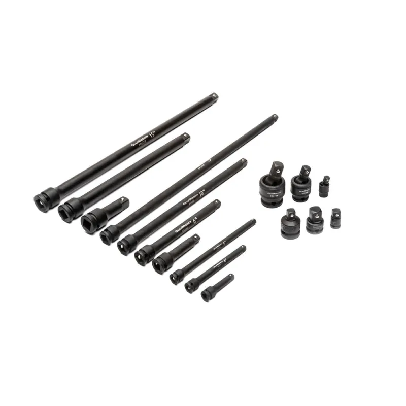 • Manganese phosphate finish on the impact extension bars, universal joints, adapters, & ¼” drive sockets for corrosion resistance