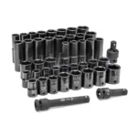 GEARWRENCH offers a wide range of impact sockets open stock & sets that are designed to deliver the performance and strength that the professional users require. They are made from chrome molybdenum alloy steel for exceptional strength and durability. The sockets also feature highly visible laser etched markings and a secondary size hard stamping to easily identify the size you need. Our sockets have off-corner loading to help reduce fastener rounding. The 44 Pc. 1/2″ Drive 6 Point SAE & Metric Standard & Deep Impact Socket Setcludes standard and deep impact sockets, 3″ & 5″ impact extensions, and a universal joint.