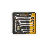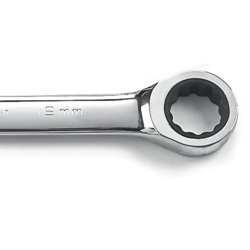 The GEARWRENCH ratcheting combination wrenches are the original patented ratcheting wrench! The ratcheting box end is designed to need as little as 5° to move fasteners versus 30° for standard wrenches. The wrenches are made from strong alloy steel with a bright, full polish chrome finish. The ratcheting box end features off-corner loading for a better grip on the fastener and reduces fastener rounding. The stubby length allows greater access to tight areas.