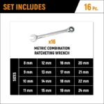 GearWrench 9416 16 Pc. 72-Tooth 12 Point Ratcheting Combination Metric Wrench Set