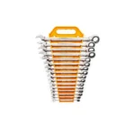 GEARWRENCH Original ratcheting wrenches combine the speed of a ratchet with the access and control of a wrench. They offer the ease of 5 degrees of movement to turn fasteners, versus 30 degrees on standard combination wrenches. The small ratcheting box end head design enables access to tight spots where a ratchet won’t fit. The open end allows for easier access on tough to reach spots, making jobs go faster and easier. This set is a great addition to any mechanic tools collection.