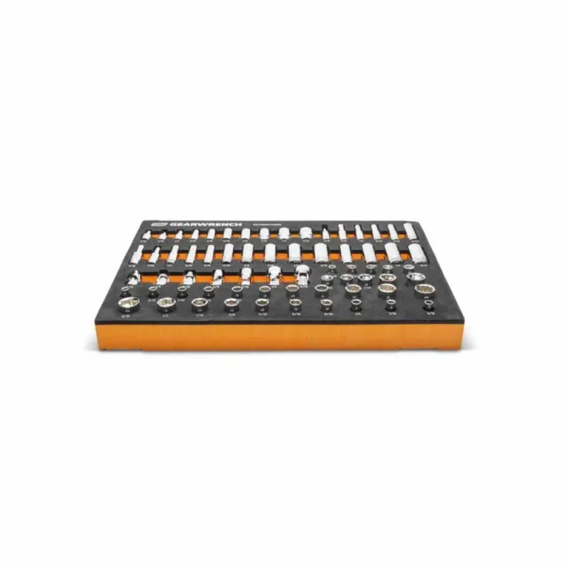 GEARWRENCH mechanics tools have been designed with professional users in mind for better productivity, access, and strength. The 68 piece 1/4” drive master metric socket set in a foam storage tray is one of the wide collection of GEARWRENCH Modular Sets. These chemical and solvent resistant foam trays are designed to fit in a wide range of tool storage systems, including our GSX storage line of products. The foams are in contrasting orange and black with high visibility size markings for easy tool identification. Each of the tools fits in a custom cutout that provides optimal protection, organization, and accessibility.