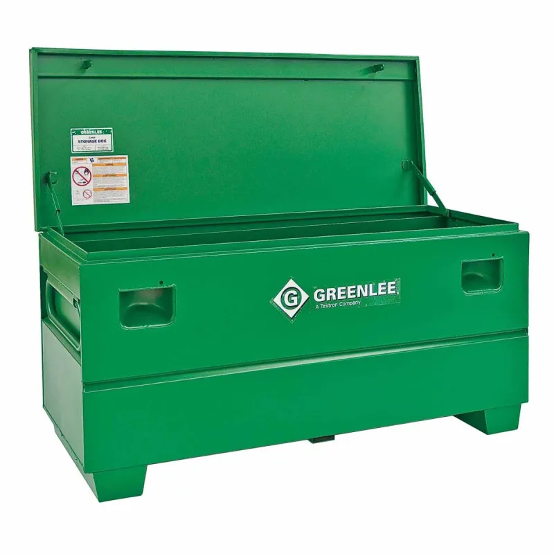 Greenlee Storage chest comes with a concealed and recessed lock protectors that offers security against drilling. It is made of high strength steel material. It has enhanced lid bolster for durability and support. It features finger-groove lid for easy opening. It has steel support arm that helps in holding lid in opening position. It measures 60 Inch x 24 Inch x 25 Inch.Chest comes with non removable heavy-duty pin, rolled edges, steel support arms and tray on back wall. It has 3-1/2-Inch support skid that is used with threaded holes for easy caster installation.