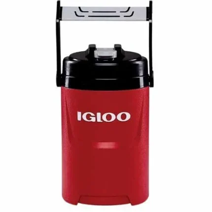 Igloo 1/2 Gallon Sport Beverage Pitcher with Hooks is a fully insulated beverage cooler that keeps beverages cold throughout the game or event. Leak resistant design prevents spills, closes securely, and folds out of the way during use. Wide opening allows for fast-flow tipping or pouring, stable and foldable carry handle. Cool Riser technology improves cooling performance by rising away from hot surfaces. This 1/2 gallon is red in color.