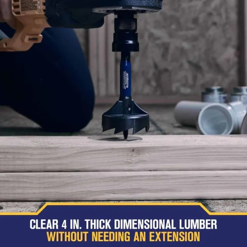 Designed to deliver 3X longer life (On average compared to IRWIN® SPEEDBOR® Self-Feed Bits) in challenging wood-drilling applications, REIGN SUPREME™ with the 1-1/2-in SPEEDBOR SUPREME™ Self-Feed Bit, even when driving into nail-embedded wood. Make quick, clean holes with durable, bi-metal construction engineered to withstand repeated nail strikes. The extended shank bit clears 4-in thick dimensional lumber without needing an extension, while the included replacement tip avoids work interruptions. REIGN SUPREME™ on the jobsite and tackle wood-drilling needs with ease.