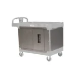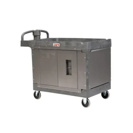 This product is an easy to use and install mobile worksite utility cart security system, offering superior load retention, protection, and simplified access. Key features include a heavily reinforced single-piece door frame to compliment rapid access through the double “”barn door”” design, a self-latching one-finger release handle, twin bolt steel security rods, anti-rattle bumpers, and knock-out provisions for power port installation. The design features heavy gauge steel throughout the product and simple attachment directly to the resin cart structure. The unique JET design works with the cart to create a more robust, rigid, durable, and secure system solution. This product is backed by the JET Red Assurance 2-Year Warranty”