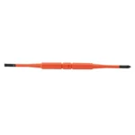 Klein Tools’ Insulated Interchangable blades contain a bright orange coating of insulation that protects from electrical shock, as well as being flame and impact resistant. When the blades are used with the Klein Tools’ insulated handle, the complete tool exceeds the ASTM F1505 standards for insulated tools, and are clearly marked with the official 1000-Volt rating symbol. These are replacement blades for the 8-in-1 Insulated Interchangeable Screwdriver Set (Cat. No. 32288) and the 2-in-1 Insulated Flip-Blade Screwdrivers (Cat. Nos. 32286, 32287, 32293).