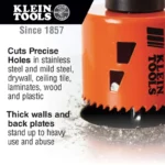 Klein’s Bi-Metal Hole Saws are optimized for cutting steel. The blades provide the fastest, most consistent and longest lasting cutting on the market today. Heavy-duty construction includes thicker 5 mil back plates to stand up to abuse much better.