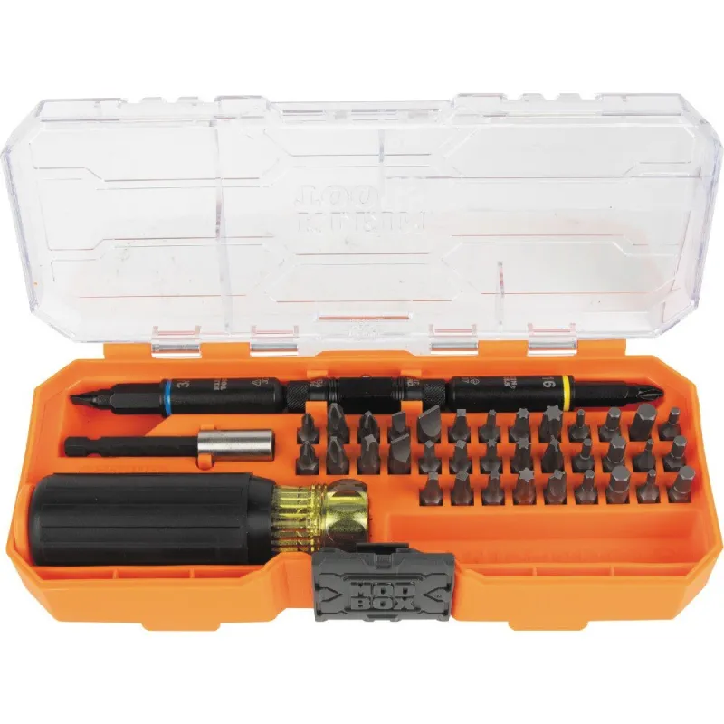 The Impact-Rated 46-Piece Multi-Bit Screwdriver / Nut Driver Set is part of Klein’s KNECT™ system. KNECT™ is a cross compatible impact-rated driver and ratchet system that delivers a seamless back and forth transition between hand and power tools. This versatile set houses popular tips and nut driver sizes. It’s the familiar feel of a multi-bit screwdriver set, with the added utility to complete any job. Case clips to other Klein cases and the MODbox™ case adapter side rail attachment.