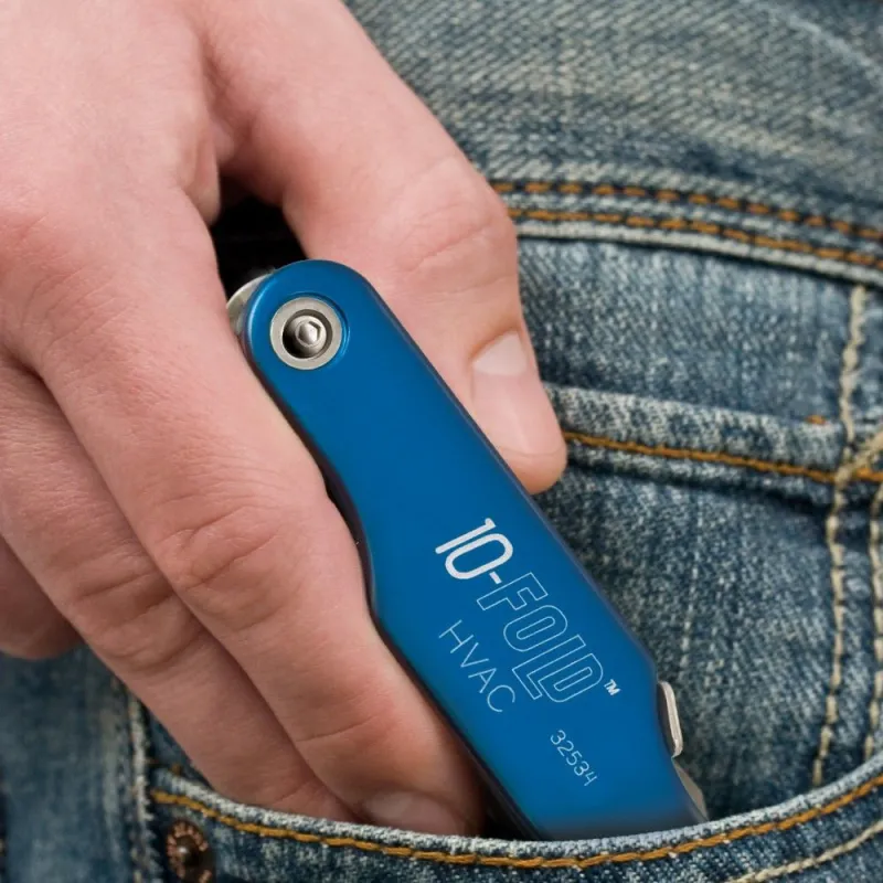 Schrader® Valve Core Screwdriver 10-in-1 tools are small and fit conveniently in a pocket. Each arm unfolds up to 180-Degees or 90-Degrees for extra tight fasteners. Each arm has four bit drivers and two different styles of nut drivers.