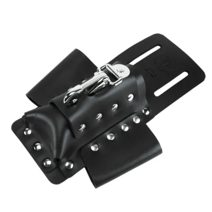 Keep all your pouches and holders together with this heavy-duty embossed tool belt. Strong, heavy-duty leather ensures long life. Equipped with a double-tongue buckle for rugged wear.