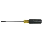 Klein’s ”Made in the USA” Slotted Demolition Driver is engineered, manufactured and tested for prying and chiseling. The heat-treated metal shaft runs the complete length of the handle to the metal strike cap. This transfers the impact force directly to the work surface. In addition, the plated metal strike cap protects the handle from hammer blows.