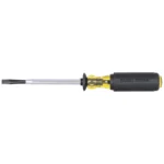The Klein Tools 5/16-Inch Slotted Screw-Holding Screwdriver is designed with positive gripping action to hold, start and drive slotted screws in awkward, hard-to-reach places. The unique split-blade screw-holding driver can wedge into the screw slot. The exclusive Cushion-Grip™ handle offers greater torque and outstanding comfort.