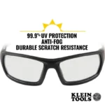 Klein Tools Professional Safety Glasses are high-quality protective eyewear that feature an anti-fog coating that won’t wear off. Scratch resistant indoor/outdoor lenses with UV protection block 99.9-Percent of harmful UV rays. Lightweight and flexible materials for long-term comfort with rubber nose piece and temples for face conforming fit and sure grip. Optional Hard Case (Cat. No. 60176) and Breakaway Lanyard (Cat. No. 60177) sold separately.