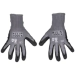 Klein Tools Knit Dipped Gloves are the ideal everyday glove for any job that requires high dexterity and moderate hand protection. The Knit Dipped gloves will help keep your hands clean and safe while offering a significant amount of cut resistance. The HPPE knit fabric allows for comfortable fit while conforming to hand shape. Stay connected and protected with touchscreen capable fingertips. The microfoam nitrile dip coating provides grip in a variety of conditions.