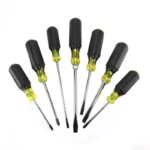 This 7-Piece Klein Tools Screwdriver Set contains the most frequently used, general purpose screwdrivers. Included are three cabinet-tip, two Phillips-tip, and two keystone-tip style screwdrivers. Each screwdriver features Klein’s patented Tip-Ident which allows quick identification of the type of screwdriver and tip orientation.