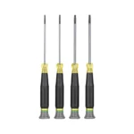 Klein Tools 4-Piece Precision Screwdriver Set includes 4 Tamperproof TORX® screwdrivers to help get the job done when precision is key. This tool has all the quality and standards of full size screwdrivers with precise finger control for turning blades in tight spaces. Screwdrivers also sold separately.