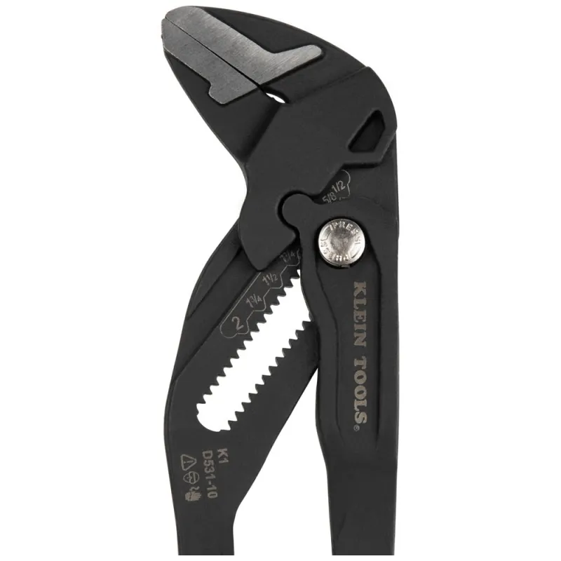 Klein’s 10-Inch Compact Plier Wrench is a versatile adjustable wrench featuring parallel jaws for a secure, smooth grip on nuts, bolts, and workpieces, ensuring damage-free operation. The handle lever adjustment reduces hand travel for easy use in confined spaces, while the high leverage ratio provides exceptional grip for holding or bending workpieces. The laser-etched size markings make it quick and easy to find the correct jaw opening, saving you time on every job.