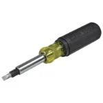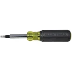 Klein Tools’ Interchangeable Multi-Bit Screwdrivers / Nut Drivers are heavy-duty tools designed for professionals. They are made of the highest-quality tempered steel with a torque-proof anchor in the handle. Strong, durable tips are manufactured with square edges to fit screw openings securely. They resist slippage and provide positive turning action. Stronger nut driver function improves bit-holding power, even with tough applications.