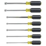 Klein Tools 7-Piece Cushion-Grip Nut Driver Set contains the type of nut drivers professionals carry most often. Each nut driver features a full hollow shaft for work on stacked circuit boards or other long bolt applications. Klein’s patented Cushion-Grip handle provides greater torque and comfort.