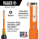 Klein Tools 661-4-INS Insulated Screwdriver, #1 Square Tip, 4″ Shank